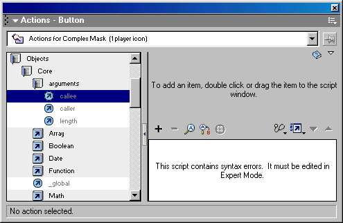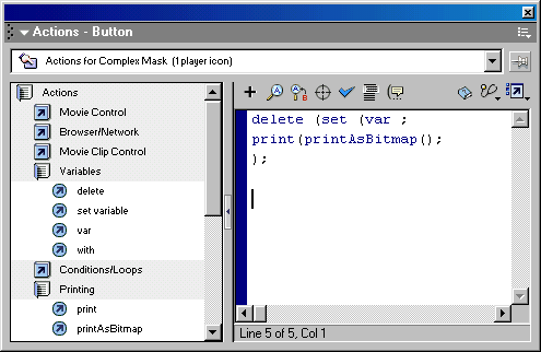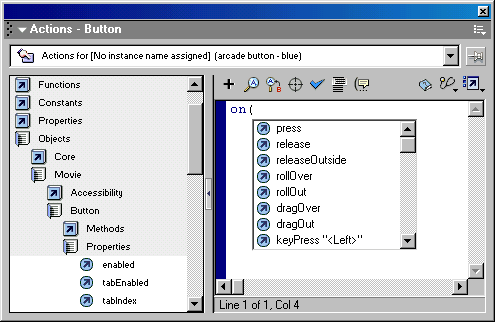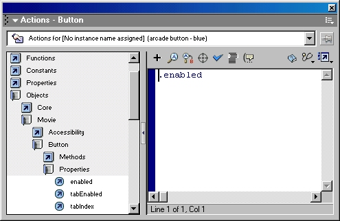 позволяет создавать сценарий для клипа, кнопки или кадра. Каждый такой сценарий