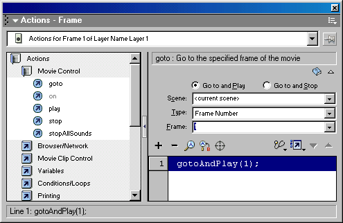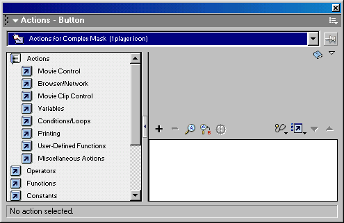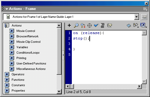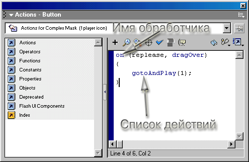 для работы с ActionScript реализован в виде диалоговой панели Actions (Действия),