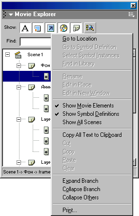 меню основного окна Flash (File, Edit и т. д.). Чтобы добраться до содержимого