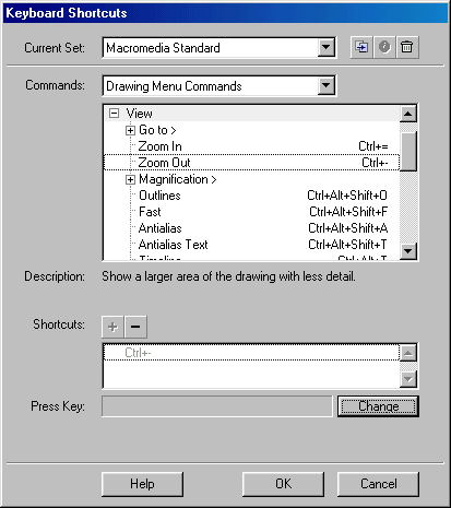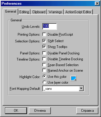 предусмотрены варианты раскладки Macromedia Standard и Flash 5.