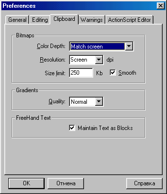3.24. Вкладка Clipboard окна установки параметров Flash