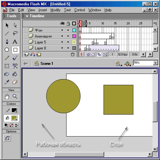 .fla), или создаете новый файл, в окне Flash появляется стол и связанная с ним