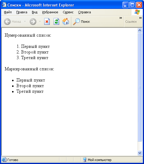 ный список задается элементом <оl>, а маркированный/неупорядоченный