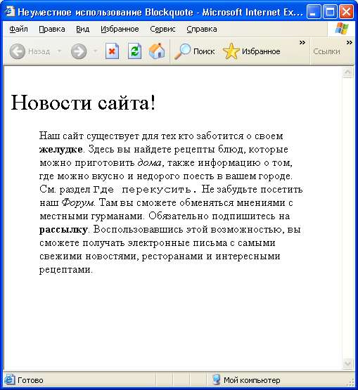 браузерах делает текст полужирным. Текстовые браузеры, не имеющие возможности